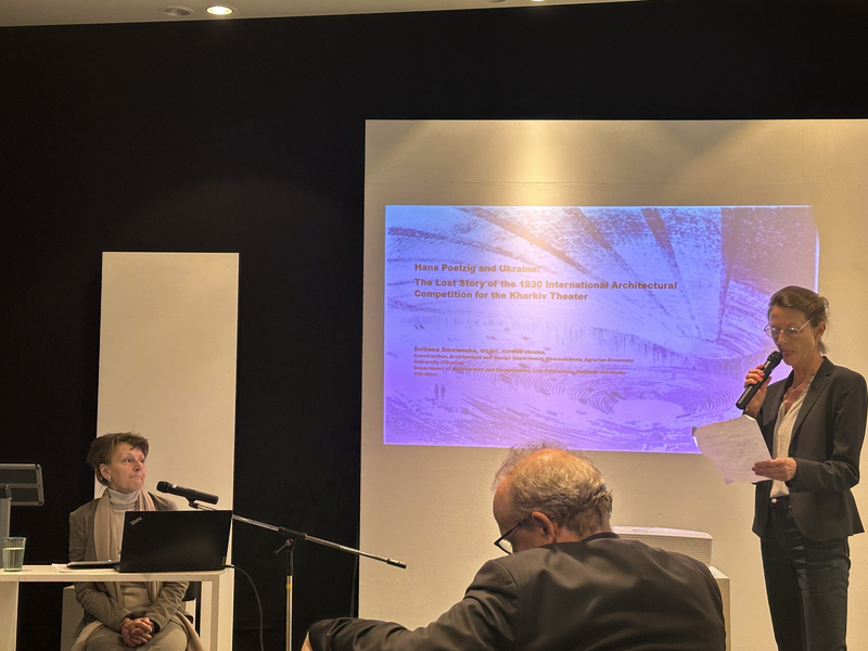 The internship also included participation in cultural and scientific events. Mariia Zavodiana and Anna Savelova attended a lecture by Prof. Dr Svitlana Smolenska entitled “The Lost Story of the 1930 International Competition for the Kharkiv Theatre”. The speaker gave a presentation and talked about the best projects for the State Ukrainian Theater of Mass Music for 4,000 seats in Kharkiv, reproduced from modern photocopies and illustrations in the architectural press of the 1930s, as well as the original preparatory drawings of the Kharkiv Theater by two German architects Hans Pelzig and Otto Kotz, which are stored in the Berlin Architectural Museum of the Technical University.